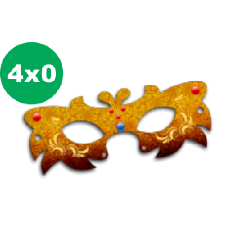 250 Máscaras - 20,18x8,8cm - 4x0 cores - Couché 300g - Corte especial padrão e laminação total brilho frente
